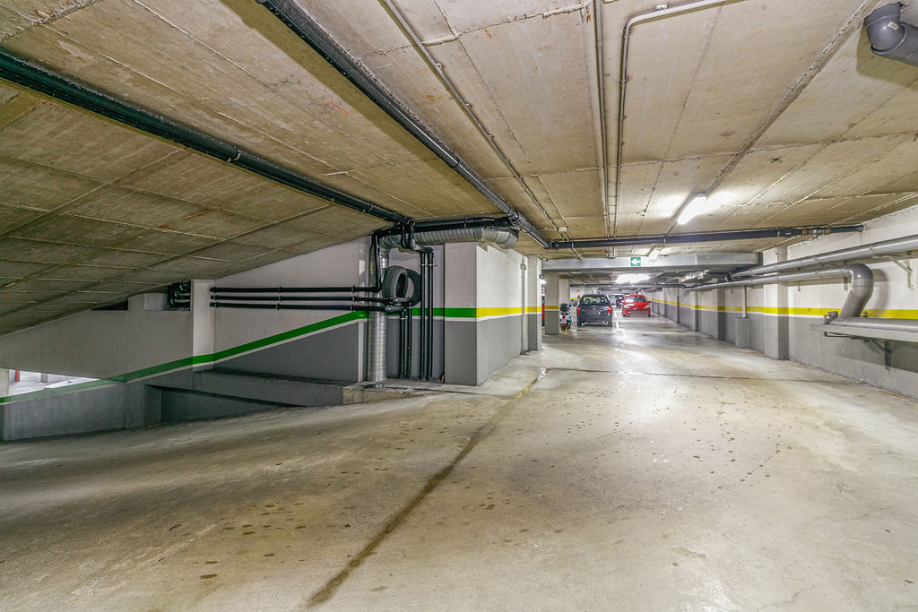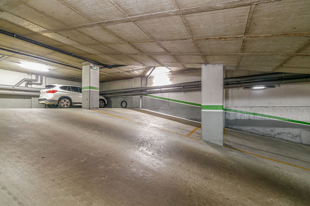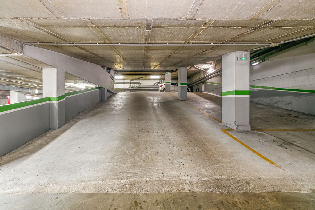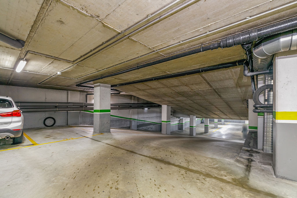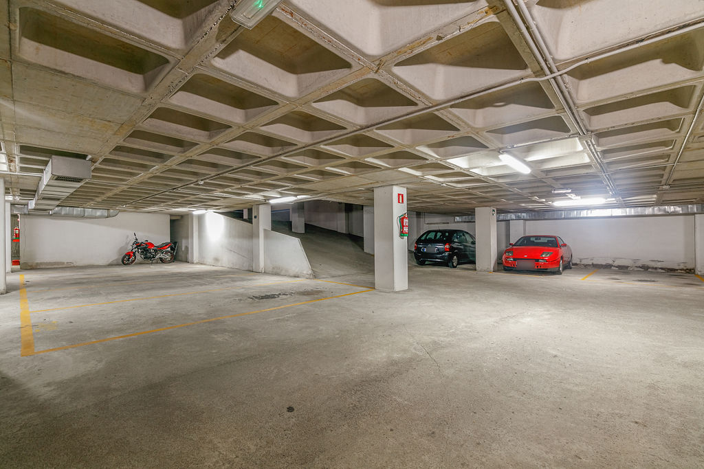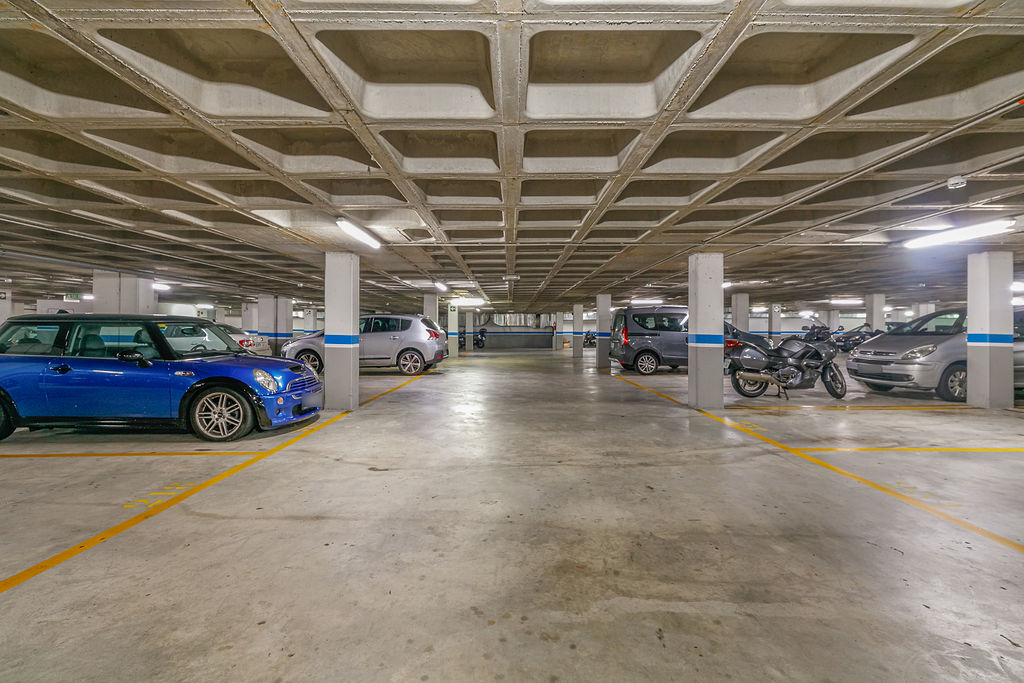 Los espacios de estacionamiento para automóviles cuentan con superficies de 10 m² aproximadamente, ubicados en la planta sótano del mismo edificio disponiendo de fácil maniobrabilidad interior.