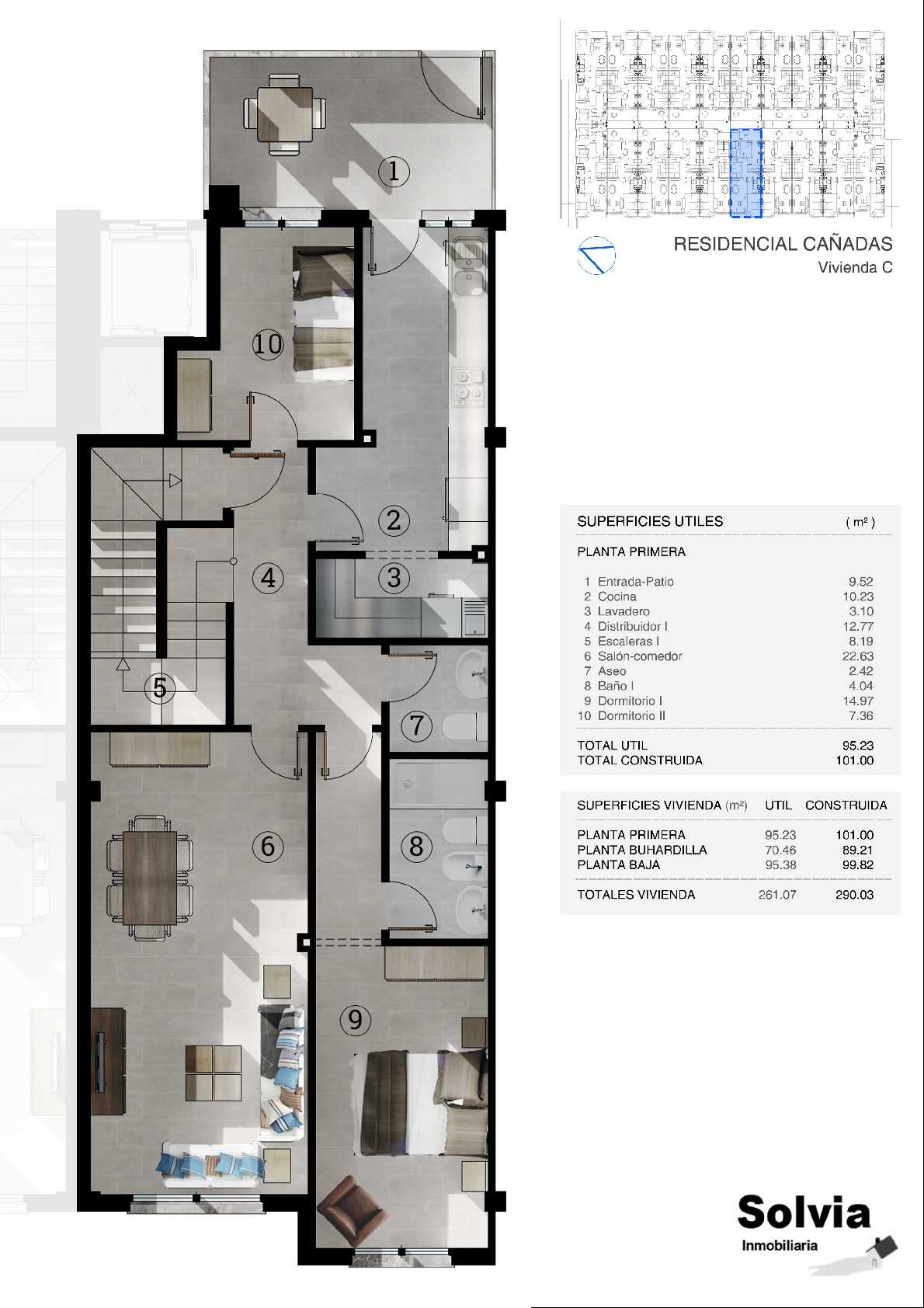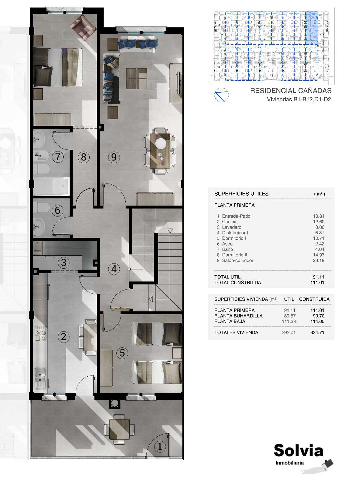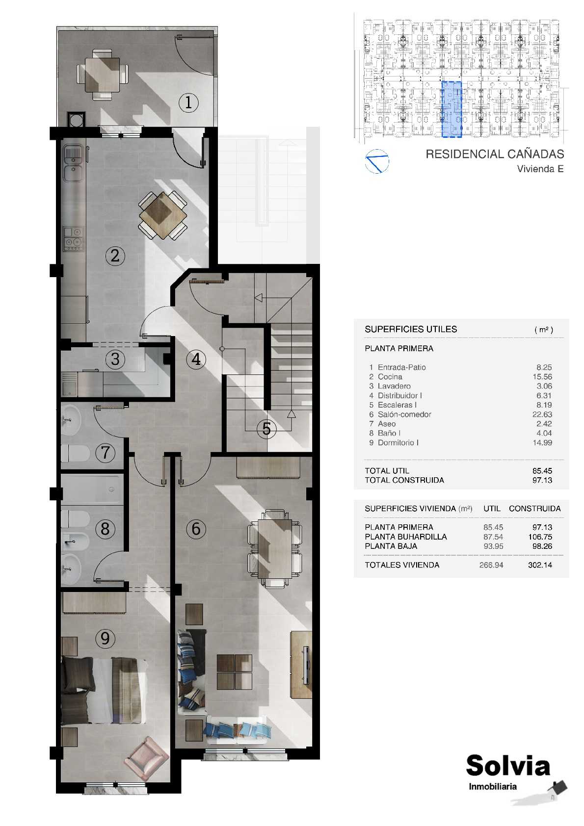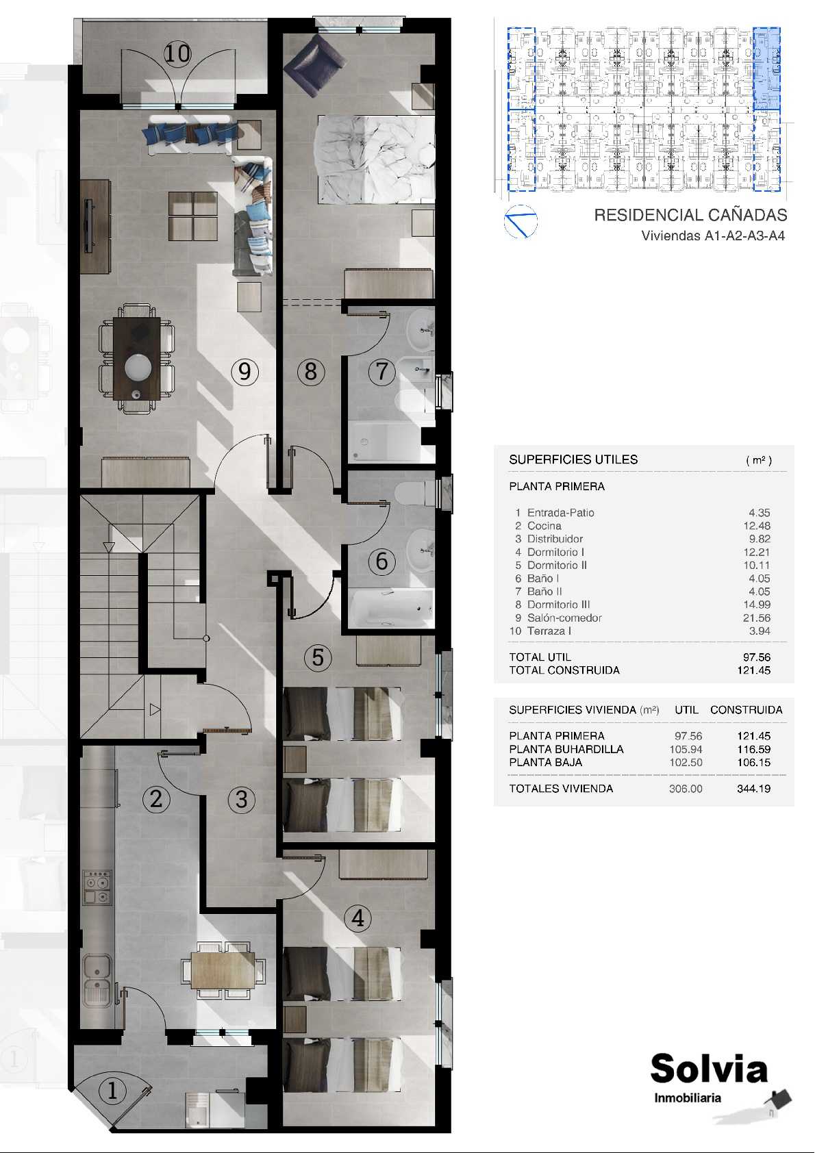 Residencial Cañadas, es una promoción de 20 viviendas exclusivas tipo dúplex de 3 y 4 dormitorios. La planta principal, destinada a la zona de día, cuenta con salón, cocina, dormitorio, baño y patio, dando a una zona común transitable y protegida de ruidos exteriores. La planta alta, dispone de dormitorios y de una gran terraza solárium ajardinada en cubierta, dando protagonismo a la vida exterior. La planta baja puede destinarse a distintos usos, entre ellos, cochera para vehículos, local comercial o un amplio salón para zona de ocio y disfrute con familia y amigos. Se encuentran acabadas con los materiales más actualizados y de primera calidad. Todas las viviendas disponen de dos plazas de garaje y trastero. Ubicadas en una zona rodeada de amplios jardines, supermercados y centros educativos, ideal para empezar una nueva etapa familiar.