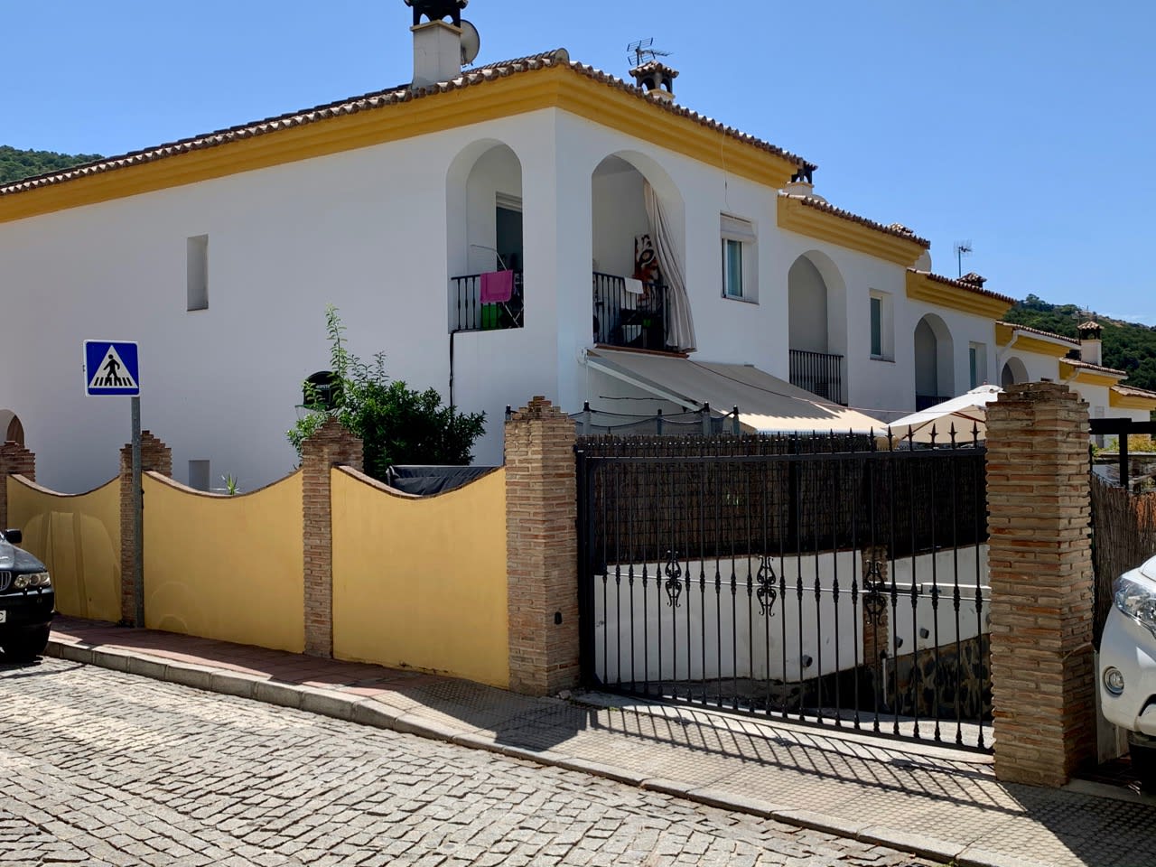 Vivienda adosada en Benahavís, Málaga. El inmueble tiene una superficie aproximada de 143 m2. distribuidos en dos plantas sobre rasante y una bajo rasante, que constan de salón-comedor muy luminoso, tres dormitorios, dos baños completos, cocina semi-amueblada y jardín. La vivienda cuenta con puerta de entrada blindada normal, cocina y baños con paredes alicatadas, carpintería interior en madera, suelos de gres, ventanas correderas y persianas en pvc. Se ubica en una zona residencial, bien comunicada por carretera.