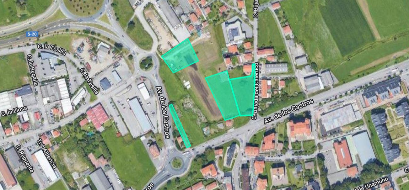 Se trata de un lote de 5 parcelas registrales que tienen una superficie total de 12431 m². Las parcelas tienen forma irregular con una ligera pendiente descendente, con gestión y urbanización pendiente. Están situadas en una zona urbana, en plena zona de expansión de la ciudad, entre la autovía S-20 y la avenida de los Castros. Con los servicios de podrá conocer las posibilidades reales de este solar y valorar sus posibilidades de inversión. Empiece ahora mismo pidiendo más información. Un responsable cercano a usted le atenderá personalmente.