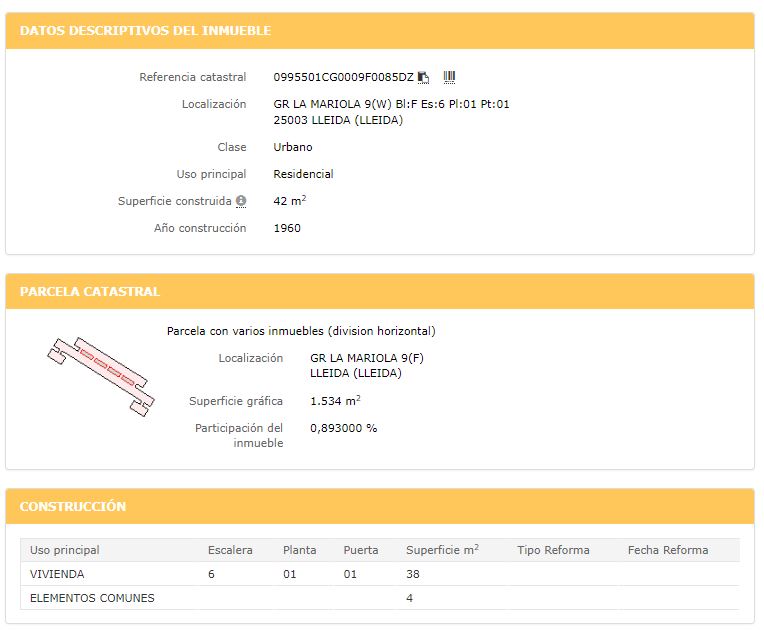 Participación en la parte proporcional al piso que se comercializaba, sobre un Solar urbano consolidado, en la Calle Mart, en la ciudad de Lleida. El edificio ha sido derribado por su alto grado de deterioro. Se trata de un Suelo urbano de uso residencial en el barrio Instituts- Templers, en pleno centro de la ciudad de Lleida. El solar del edificio que se ha producido el derribo tiene una superficie de 520 m2. La topografía natural del terreno es llana, con fachada a dos calles. Se trata un terreno urbano consolidado La caracterización urbana, es que se trata de una zona con desarrollo finalizado, con una consolidación de nivel medio alto. Existe pavimentación, alcantarillado, suministro de agua, suministro de luz, existe suministro de gas por red general, dispone de postes de servicio telefónico, alumbrado público, la conservación de la calidad de las infraestructuras colindantes es de nivel medio.
