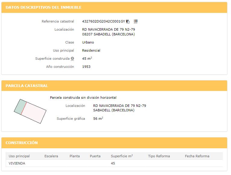 Suelo urbano de uso residencial en Ronda Navacerrada, en el municipio de Sabadell, provincia de Barcelona. Dispone de una superficie de 56 m2. La topografía natural del terreno es llana, con fachada a una calle. Se trata un terreno urbano consolidado La caracterización urbana, es que se trata de una zona con desarrollo finalizado, con una consolidación de nivel medio alto. Existe pavimentación, alcantarillado, suministro de agua, suministro de luz, existe suministro de gas por red general, dispone de postes de servicio telefónico, alumbrado público, la conservación de la calidad de las infraestructuras colindantes es de nivel medio.
