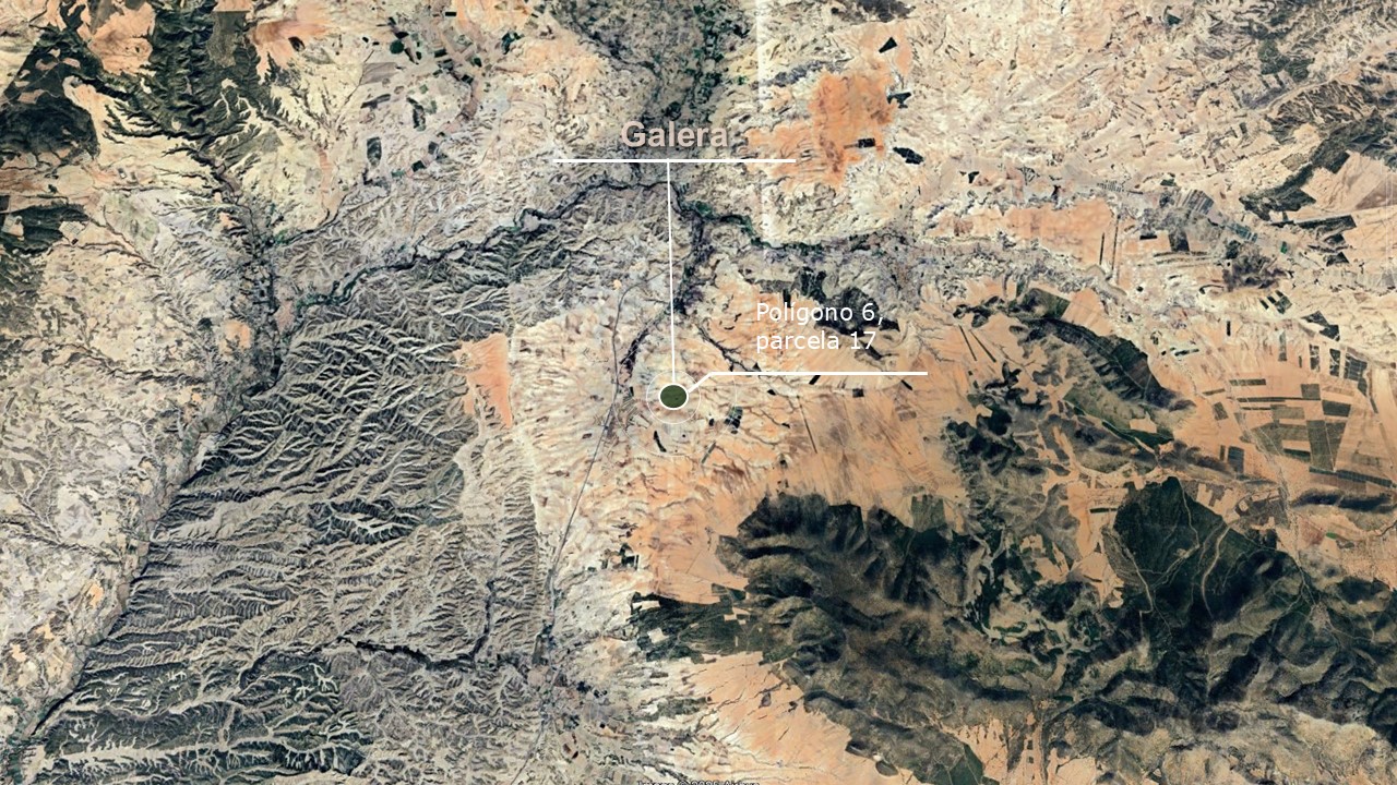 Suelo agrario en terreno rústico de 48.236 m² situado en el pago del Campillo, Pie del Periate, término municipal de Galera, provincia de Granada. Bien comunicado mediante la carretera GR-9107 que conecta con la A-330 en pocos minutos.
