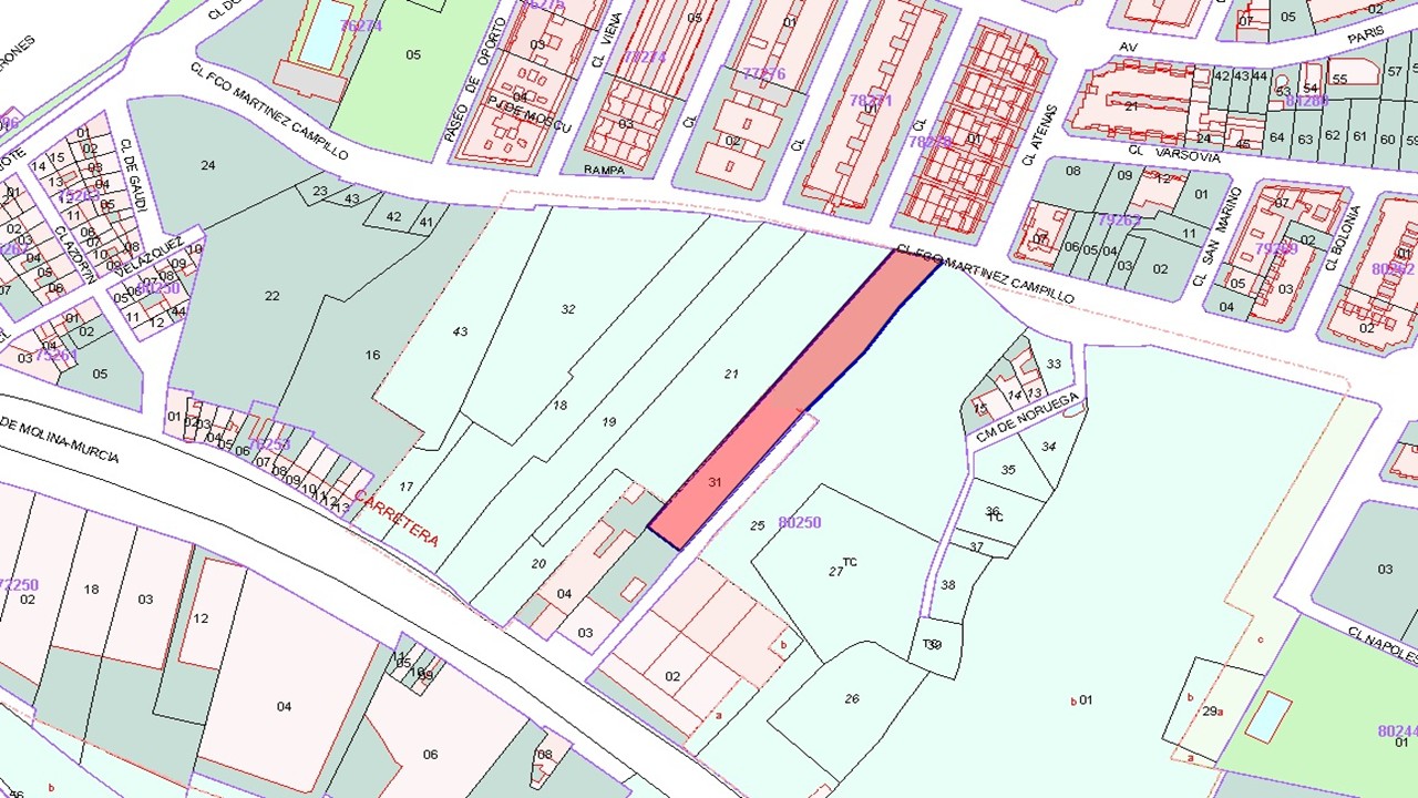 Se vende el 62.15% del pleno dominio de un suelo urbano situado en la localidad de Molina de Segura, provincia de Murcia. Tiene una superficie de 1903,45 m2 registrales. Molina de Segura es una ciudad y municipio español perteneciente a la Región de Murcia, situada en la comarca natural de la Vega Media del Segura, de la que es considerada capital, siendo sede del partido judicial de su nombre. Su término municipal tiene una extensión de 169,5 km².Es el cuarto municipio en población de la Región de Murcia, con 73 095 habitantes (INE, 2020),1 después de Murcia, Cartagena y Lorca. Del total de su población, aproximadamente un 65 % residen en el núcleo urbano, repartiéndose el resto entre 14 pedanías, sobre todo en Romeral, Torrealta, Ribera de Molina y El Llano. Forma parte del área metropolitana de Murcia.